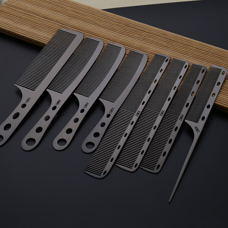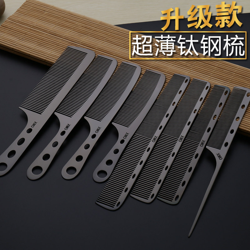 发型师专用美发金属钢梳子不锈钢剪发梳子男发梳超薄平头女发梳