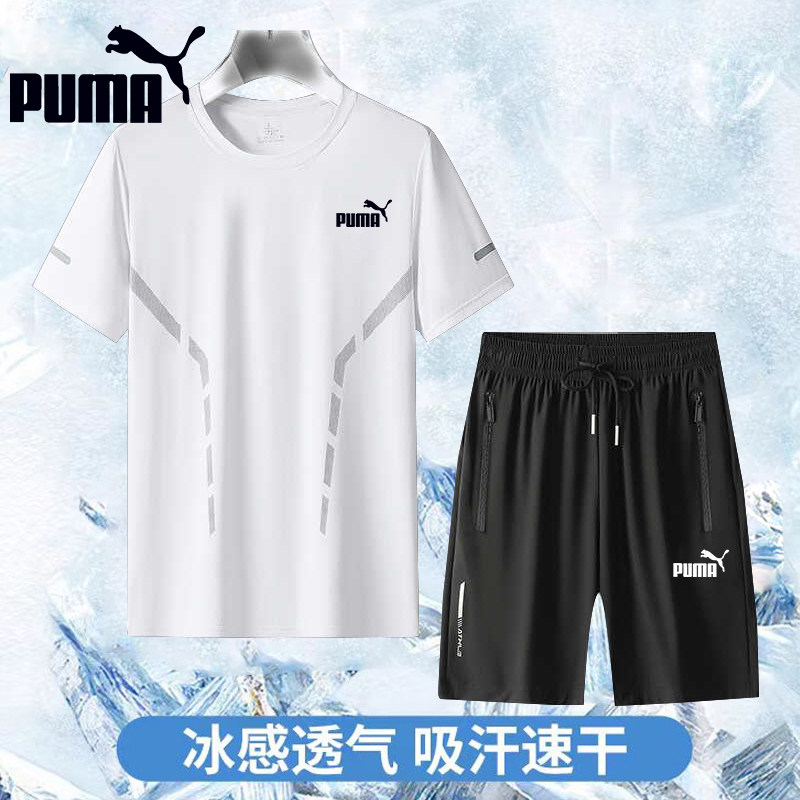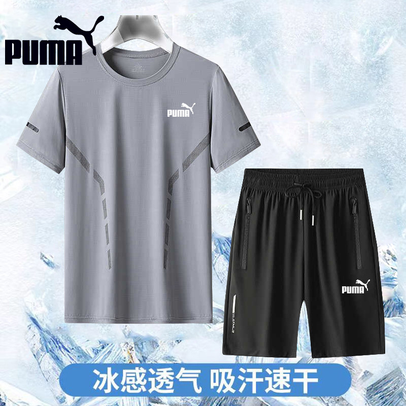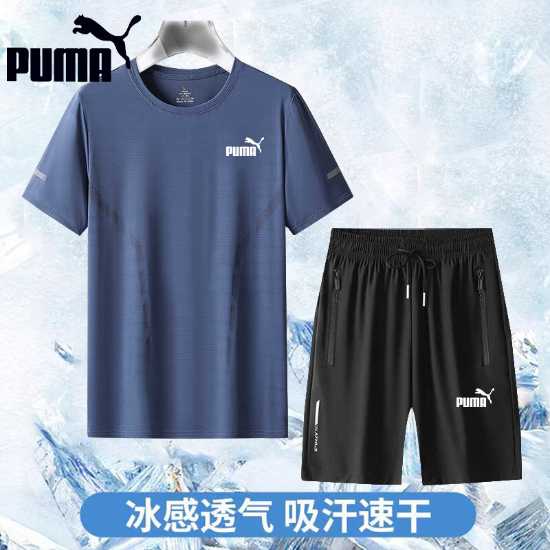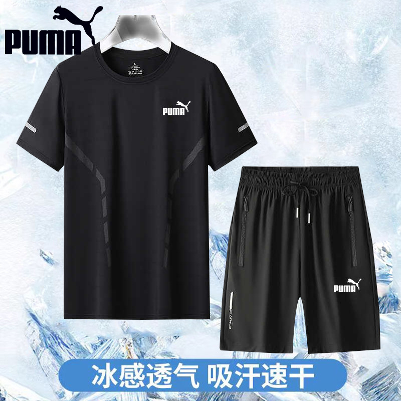Puma/彪马运动套装男士跑步速干冰丝短袖t恤男款宽松休闲五分短裤