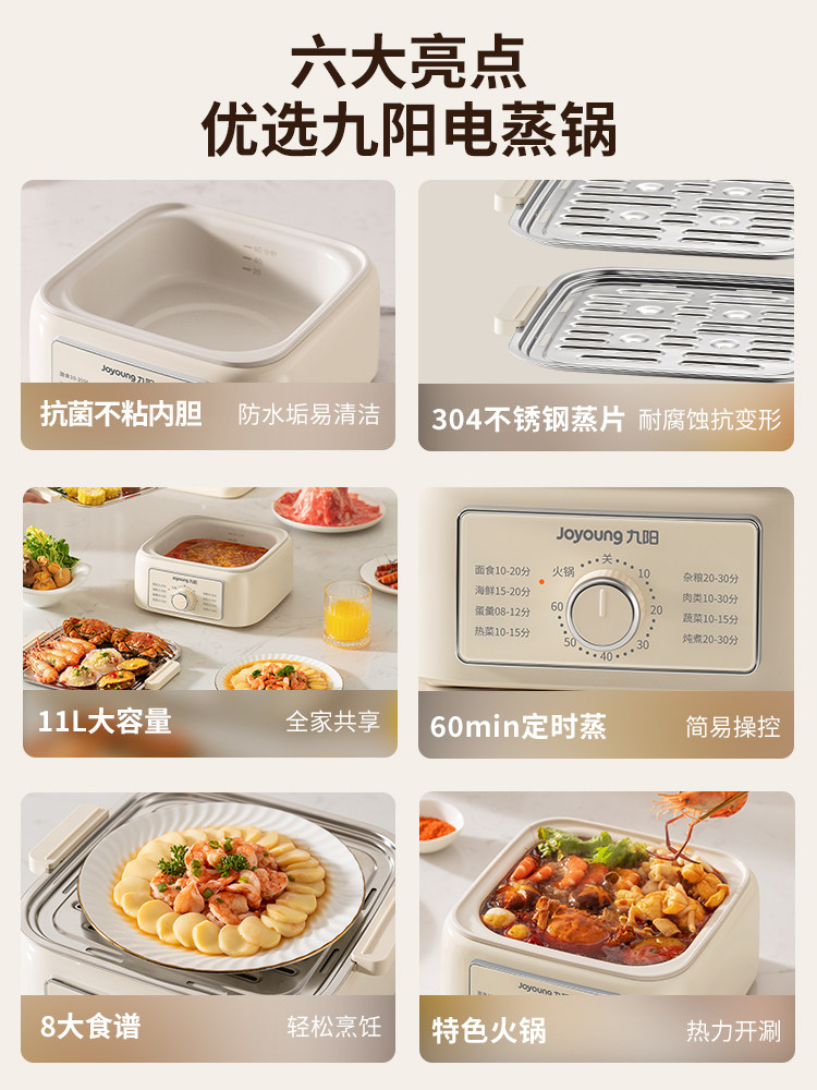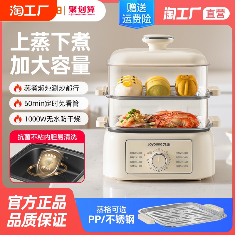 九阳电蒸锅家用多功能三层大容量不锈钢蒸笼蒸煮一体锅官方正品券后价¥349九阳合千润专卖店 16 小时前