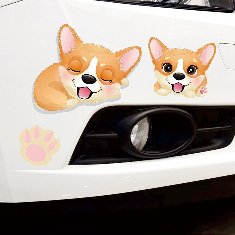汽车卡通可爱狗狗贴纸车头保险杠划痕遮挡遮盖3D立体网红个性车贴