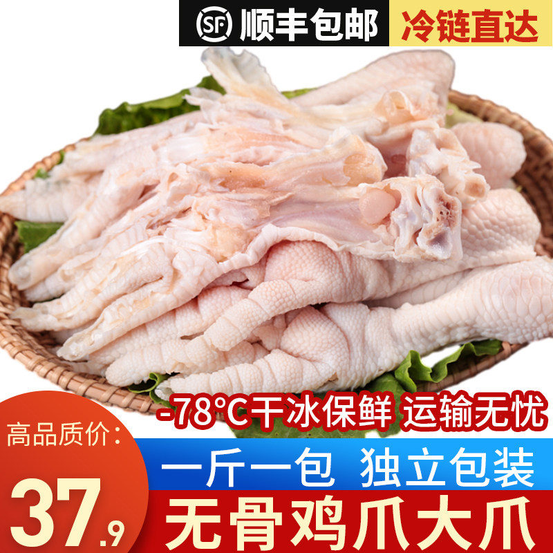 天猫闻鸣旗舰店,新鲜大号无骨生鲜鸡脚剔骨脱骨鸡爪,手工精细脱骨 顺丰冷链包邮 净重无包冰