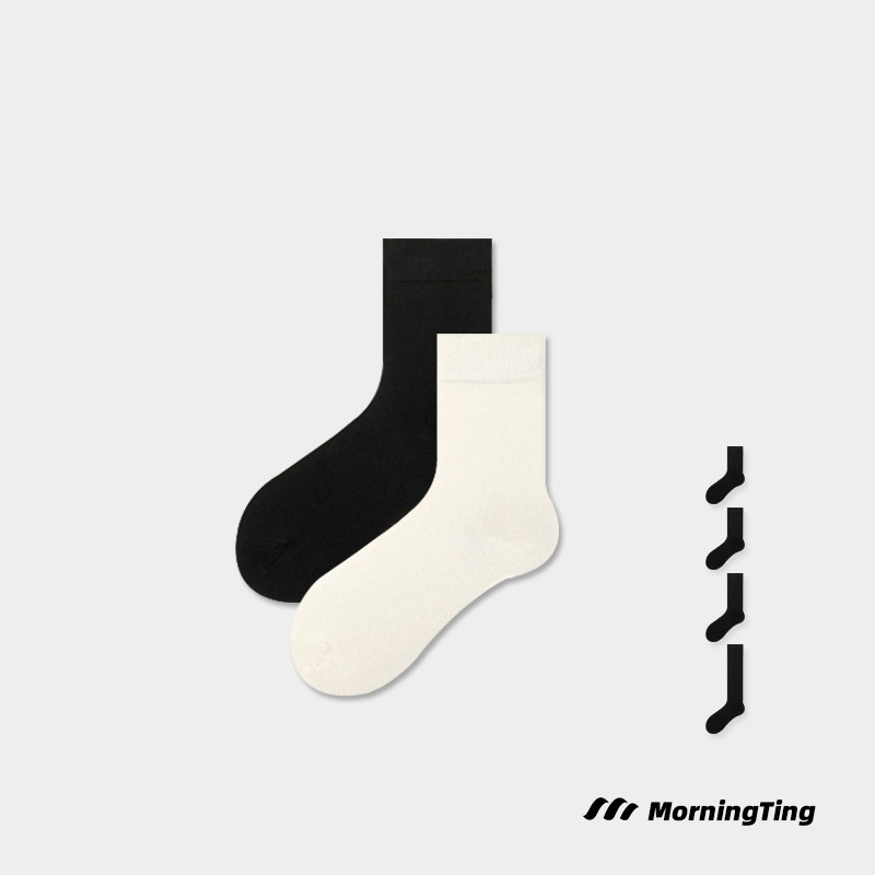 淘宝MorningTime,黑色袜子男袜纯棉中筒袜纯色白色简约长袜精梳棉堆堆袜无骨袜秋冬