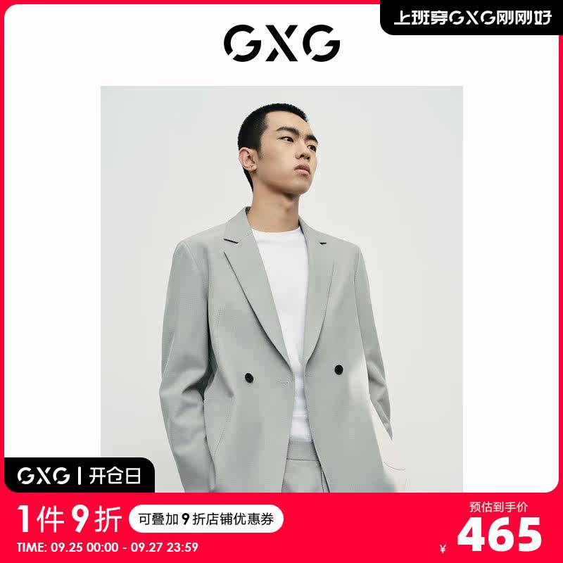 天猫gxg官方outlets店,gxg奥莱22年男士春新品灰绿色西服,双排扣设计-都市时尚