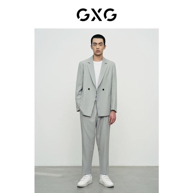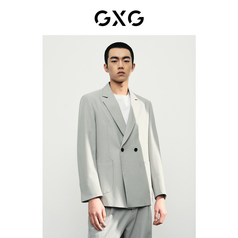 GXG奥莱 22年男装 奥莱男士春新品灰绿色双排扣西服#10D1010059A