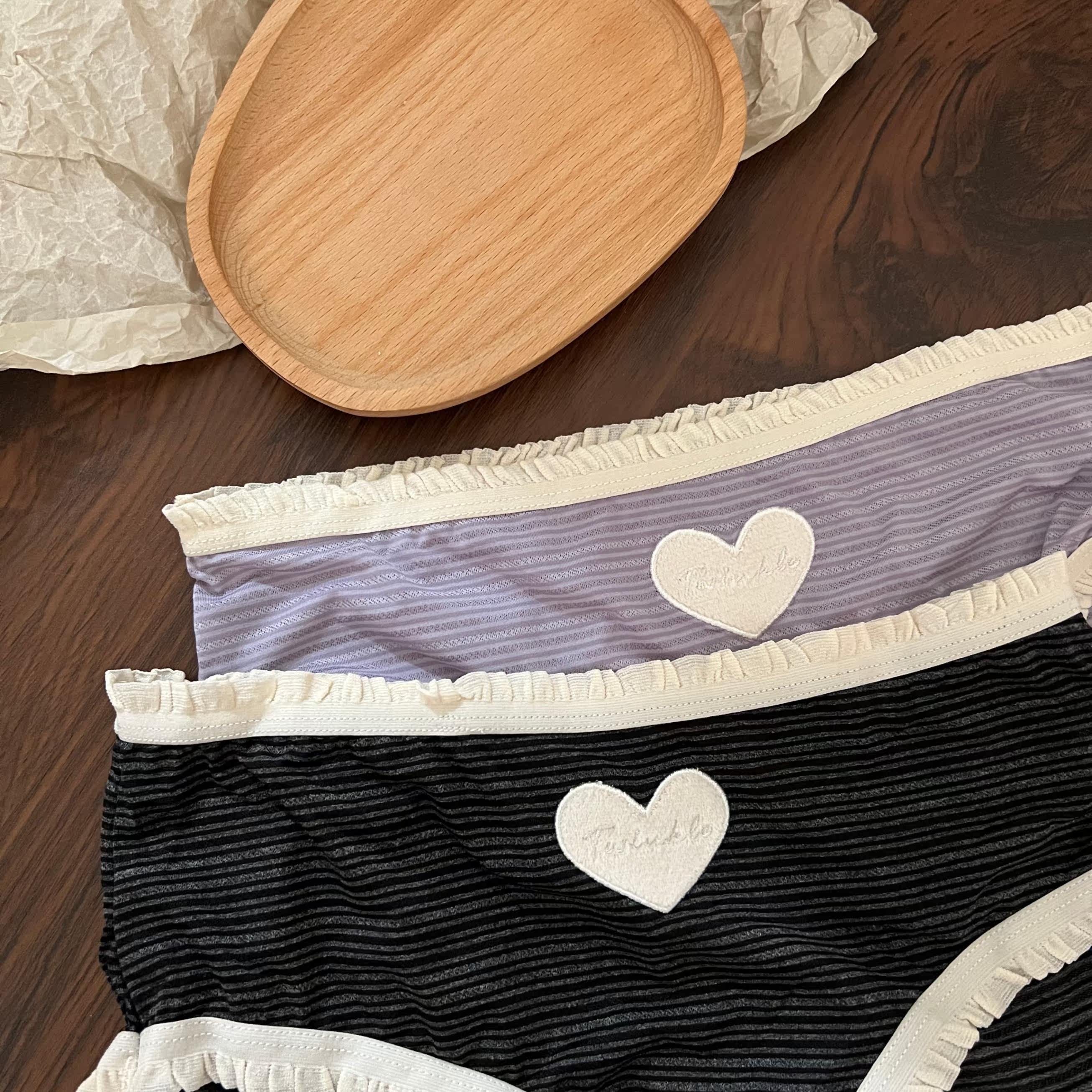 sweet小铺日系甜美小可爱小清新爱心透气条纹花边少女三角内裤女