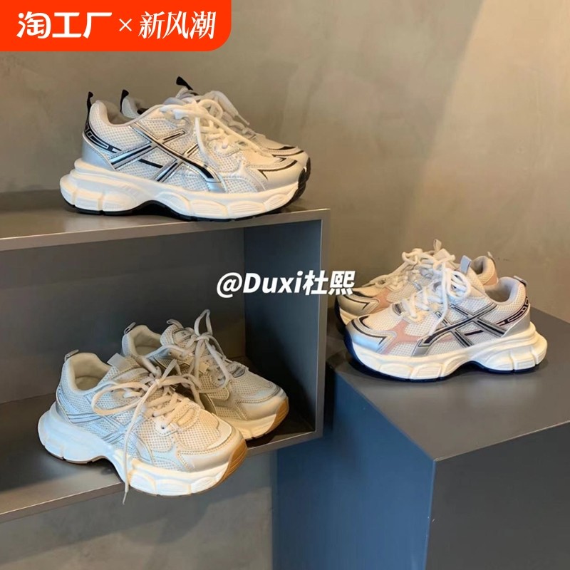 天猫天天特卖工厂店,厚底老爹鞋女鞋子2024新款夏季透气网面爆款增高复古跑鞋运动鞋潮