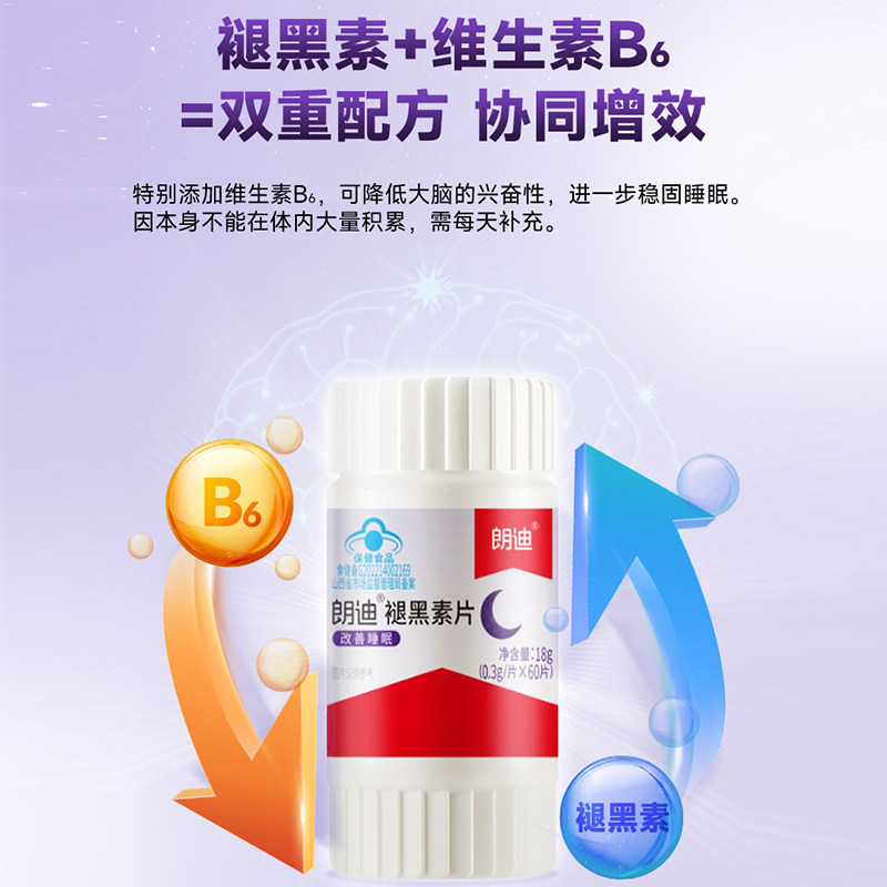 朗迪褪黑素片改善睡眠维生素B6成人安眠睡眠60片多盒阿里健康自营
