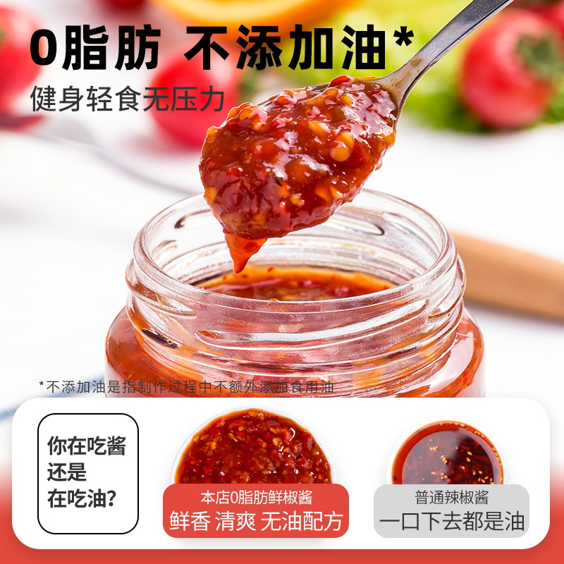 0脂肪鲜椒辣椒酱拌饭酱拌面酱低脂酱料调味卡荞麦减零脂家用辣酱
