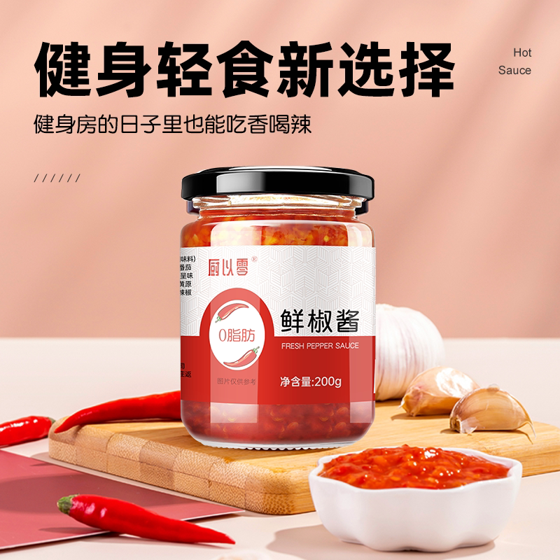天猫厨以零旗舰店,0脂肪鲜椒辣椒酱拌饭酱拌面酱低脂酱料调味卡荞麦减零脂家用辣酱