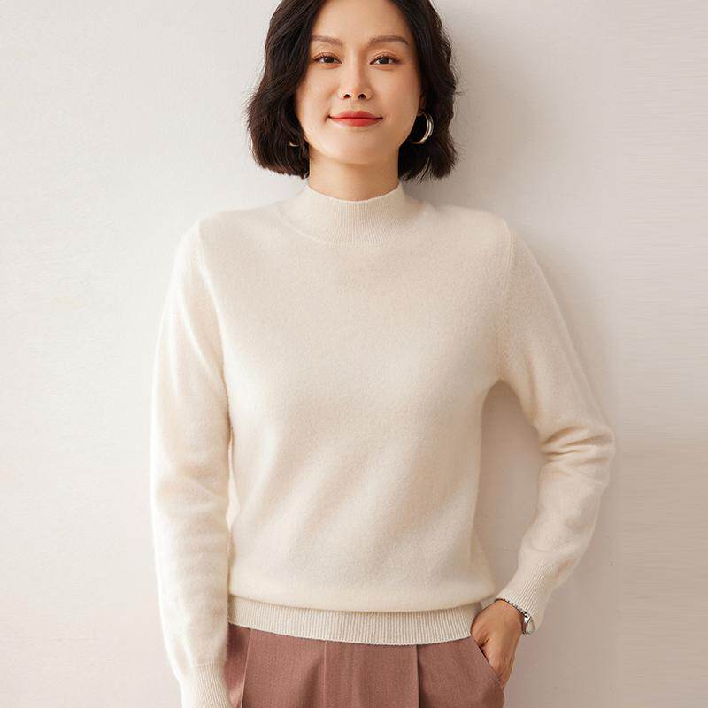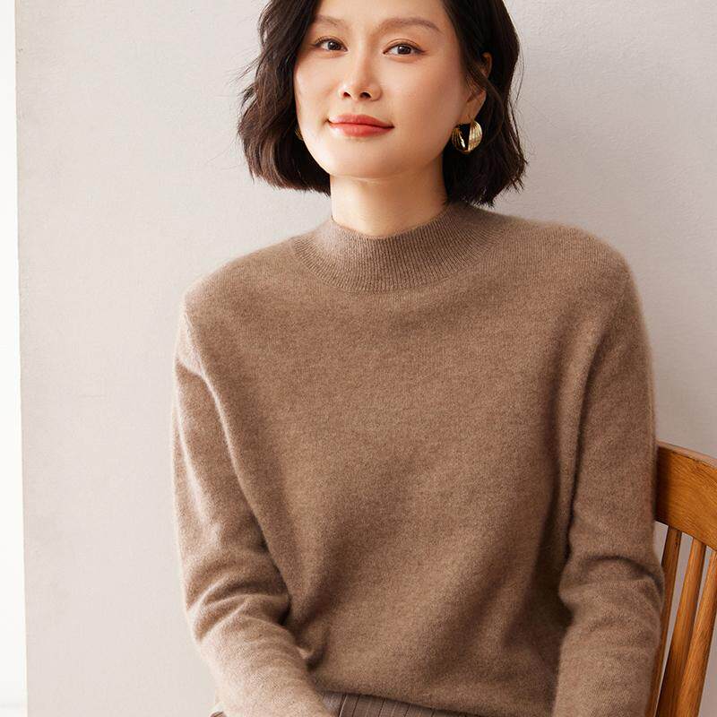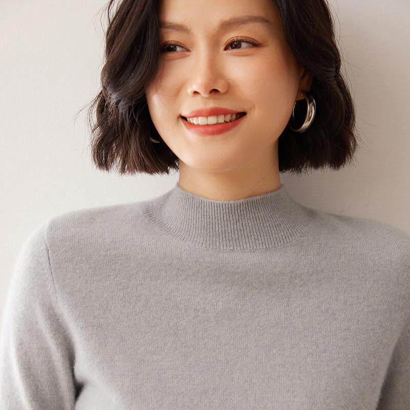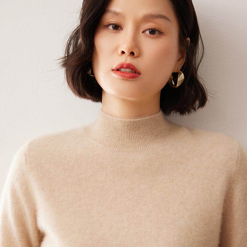 鄂尔多斯产100%纯山羊绒衫女半高领短款针织打底衫纯色毛衣秋冬