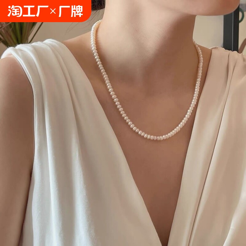 天然淡水珍珠项链女 小米珠锁骨链复古典雅百搭ins风颈链妈妈礼物