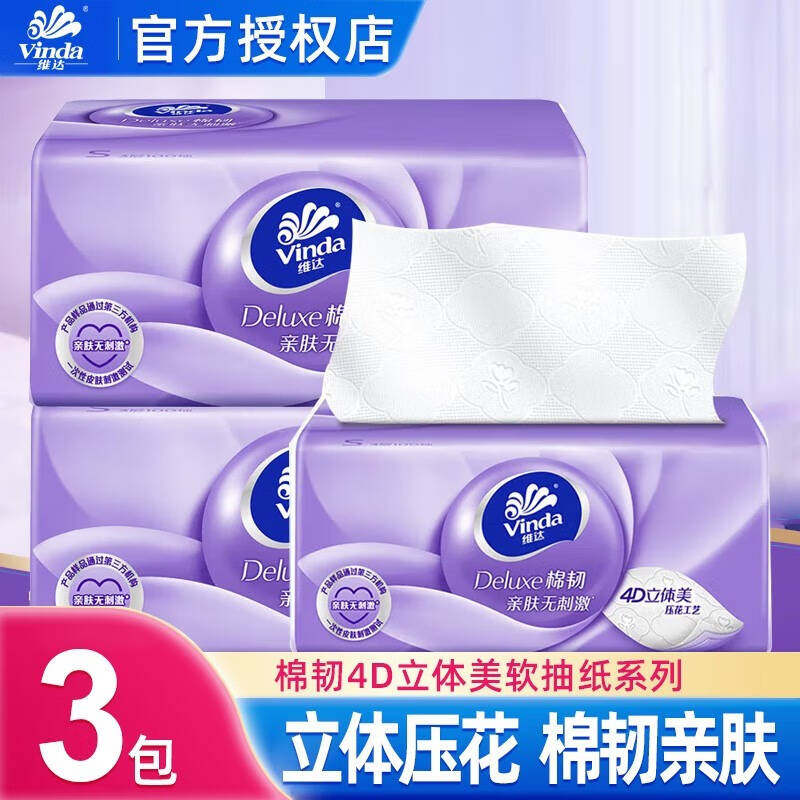 淘宝龙鑫生活馆,维达棉韧压花抽纸3层加厚款