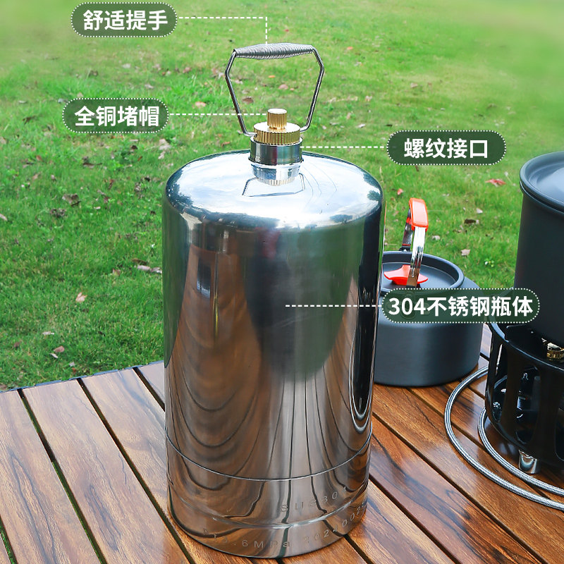 户外便携不锈钢液化气罐高山小煤气燃气罐瓶野炊露营循环可充气罐