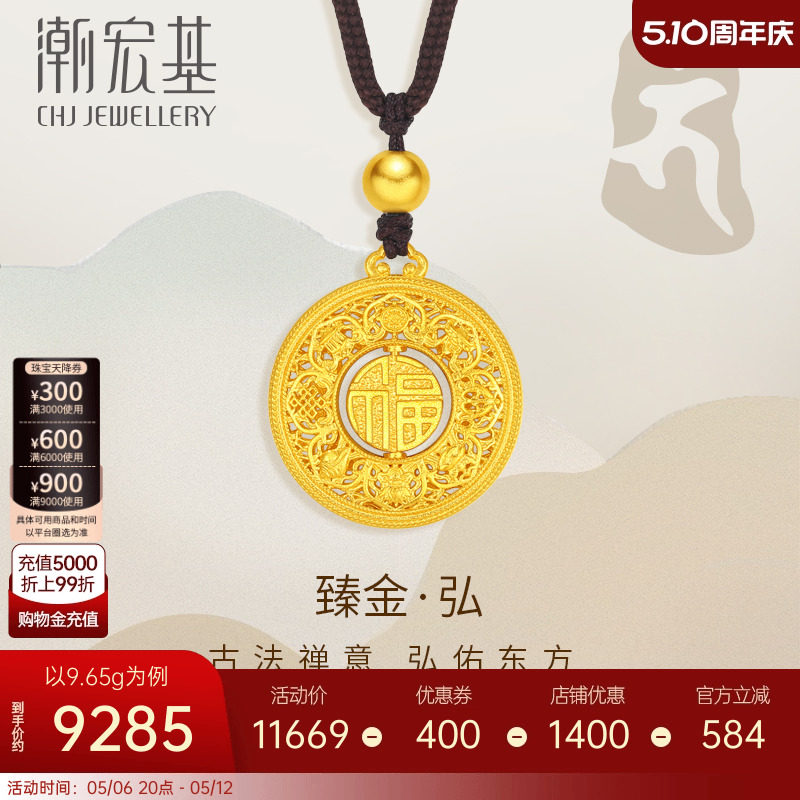 天猫潮宏基珠宝旗舰店,潮宏基臻金弘八宝罗盘足金项链古法黄金套链福牌吊坠计价