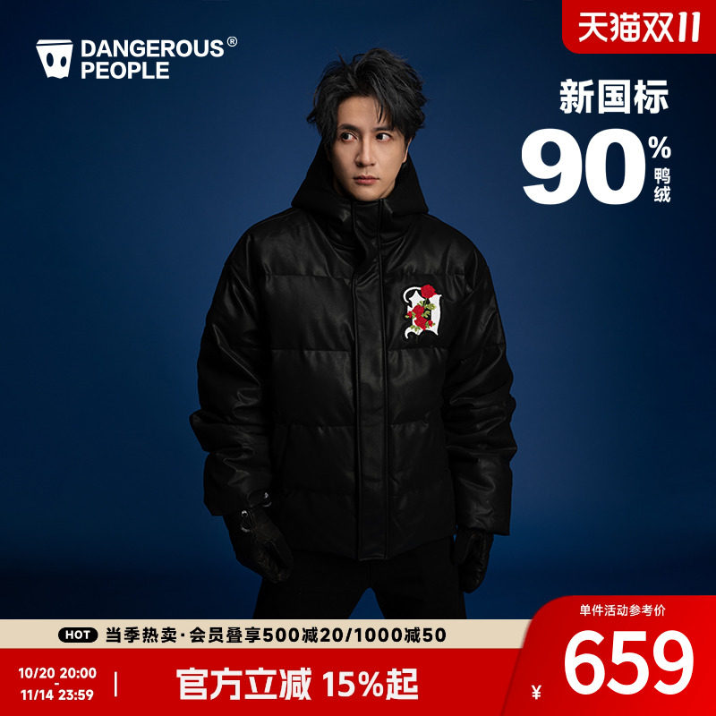天猫dangerouspeople旗舰,羽绒服薛之谦dsp玫瑰绣花标,.