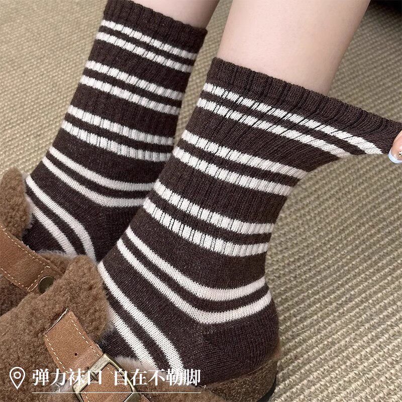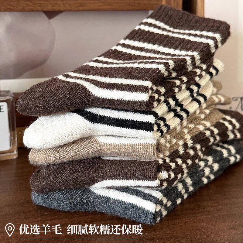 保暖羊毛条纹袜子女中筒袜秋冬季加厚加绒