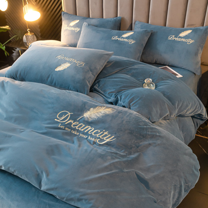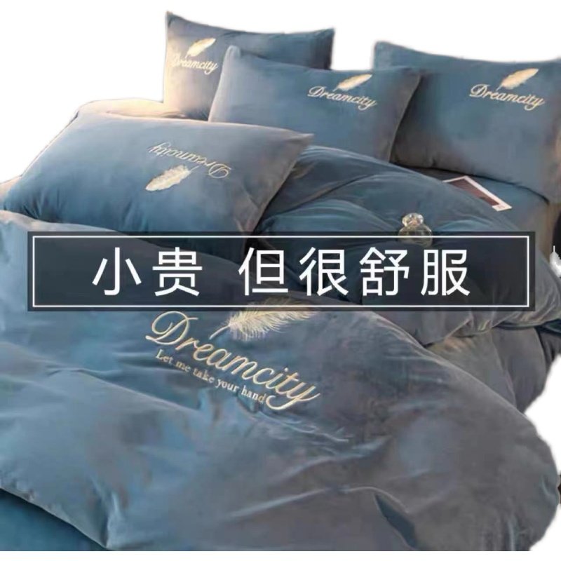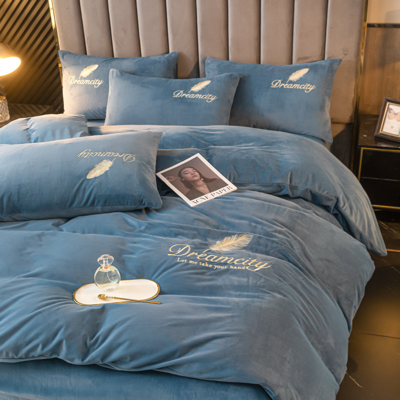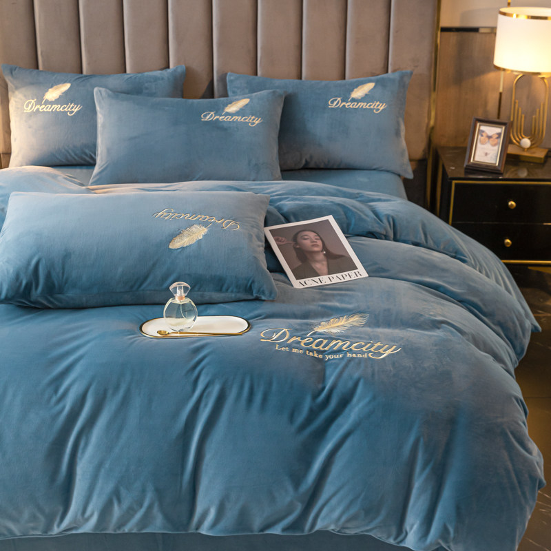 冬季牛奶绒四件套冬天珊瑚绒加绒加厚保暖防静电被套床单床上用品