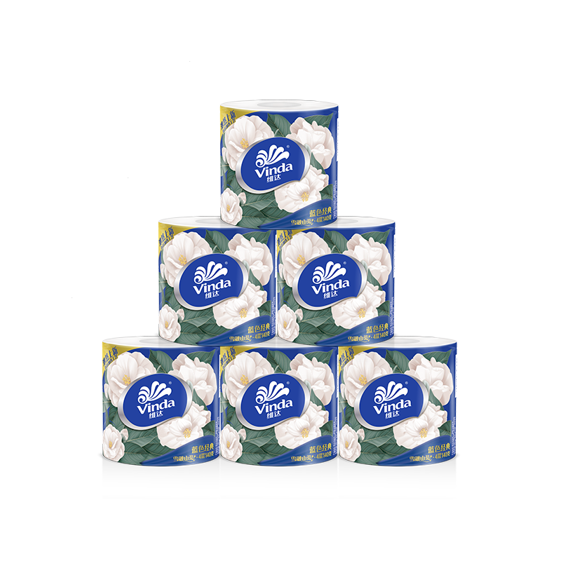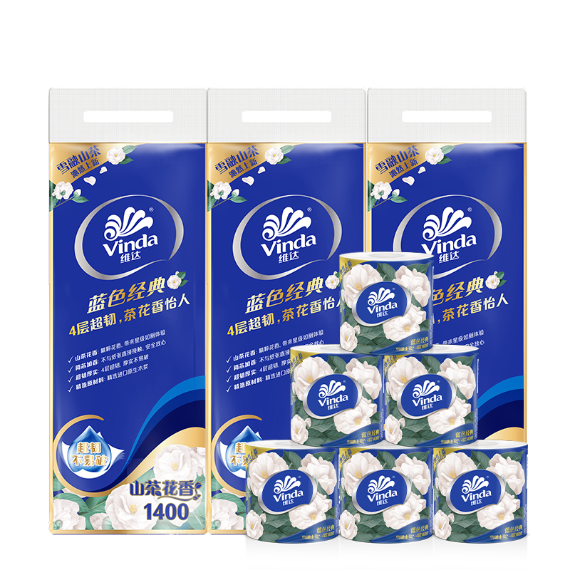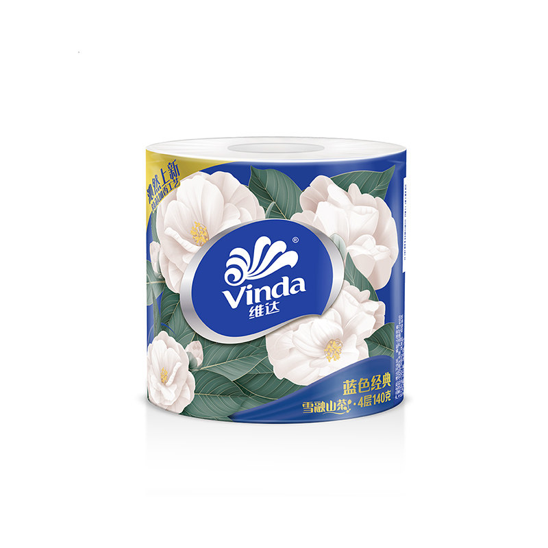 维达超韧山茶花蓝色经典有芯卷纸卫生纸家用实惠提装4层140克30卷