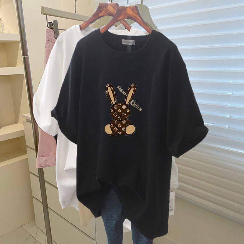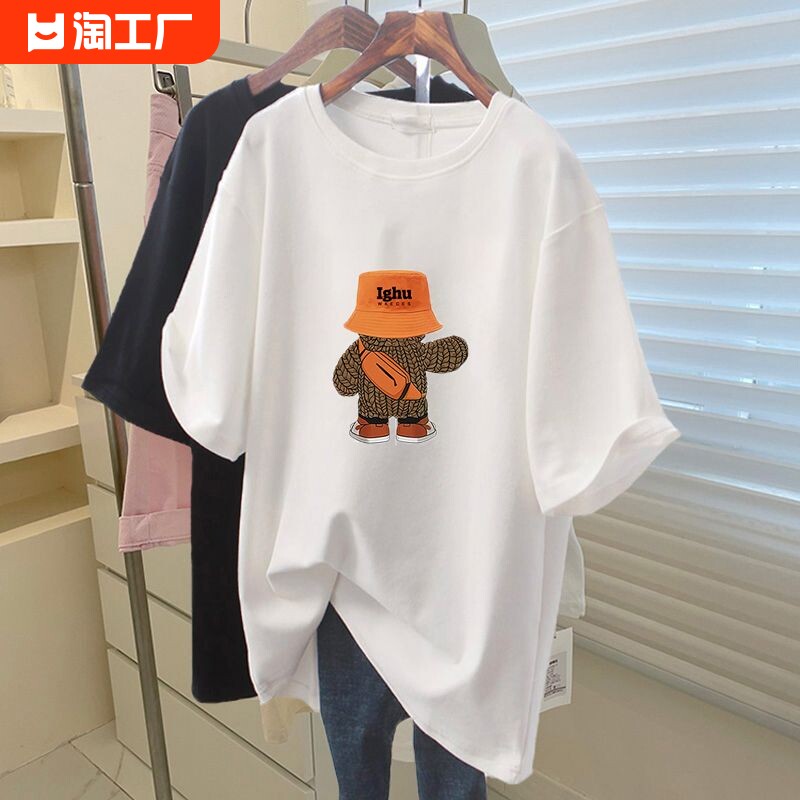 天猫天天特卖工厂店,2024年新款纯棉t恤女短袖宽松胖mm大码女装减龄洋气大版体恤上衣