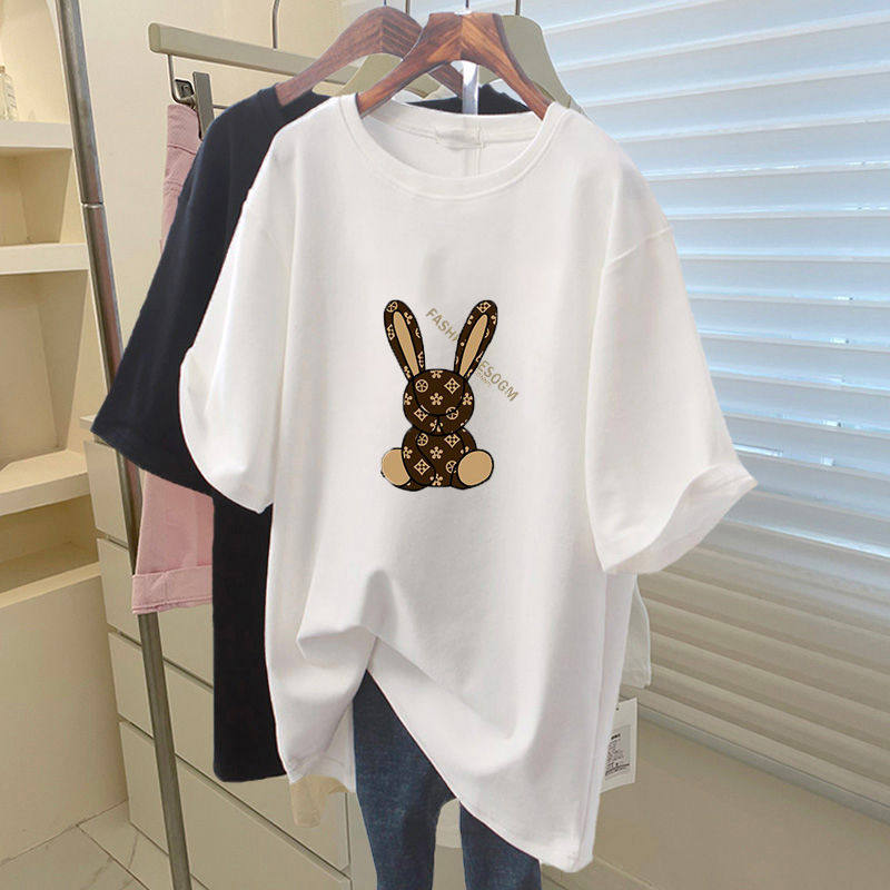 2024年新款纯棉t恤女短袖宽松胖mm大码女装减龄洋气大版体恤上衣
