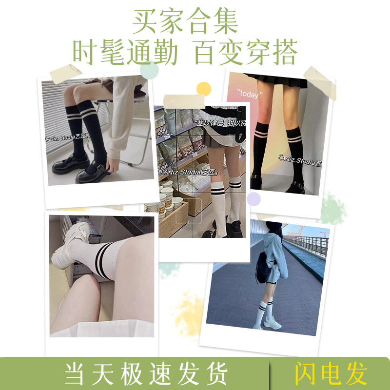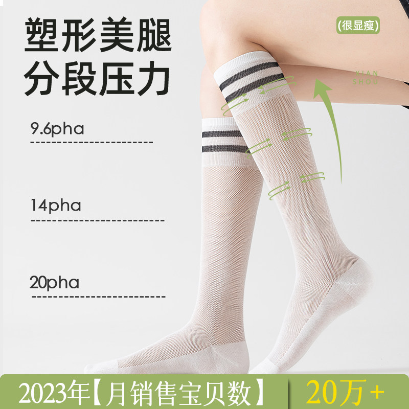白色小腿袜女夏季薄款高筒压力瘦腿袜韩版长筒袜夏天运动学院风袜