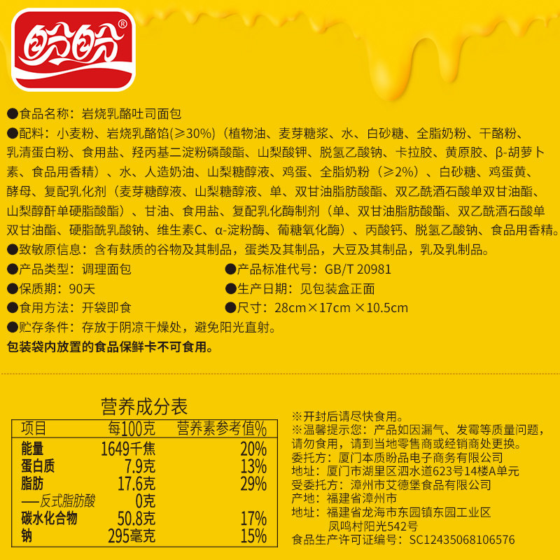 盼盼岩烧乳酪吐司芝士面包早餐整箱糕点懒人速食零食休闲食品小吃