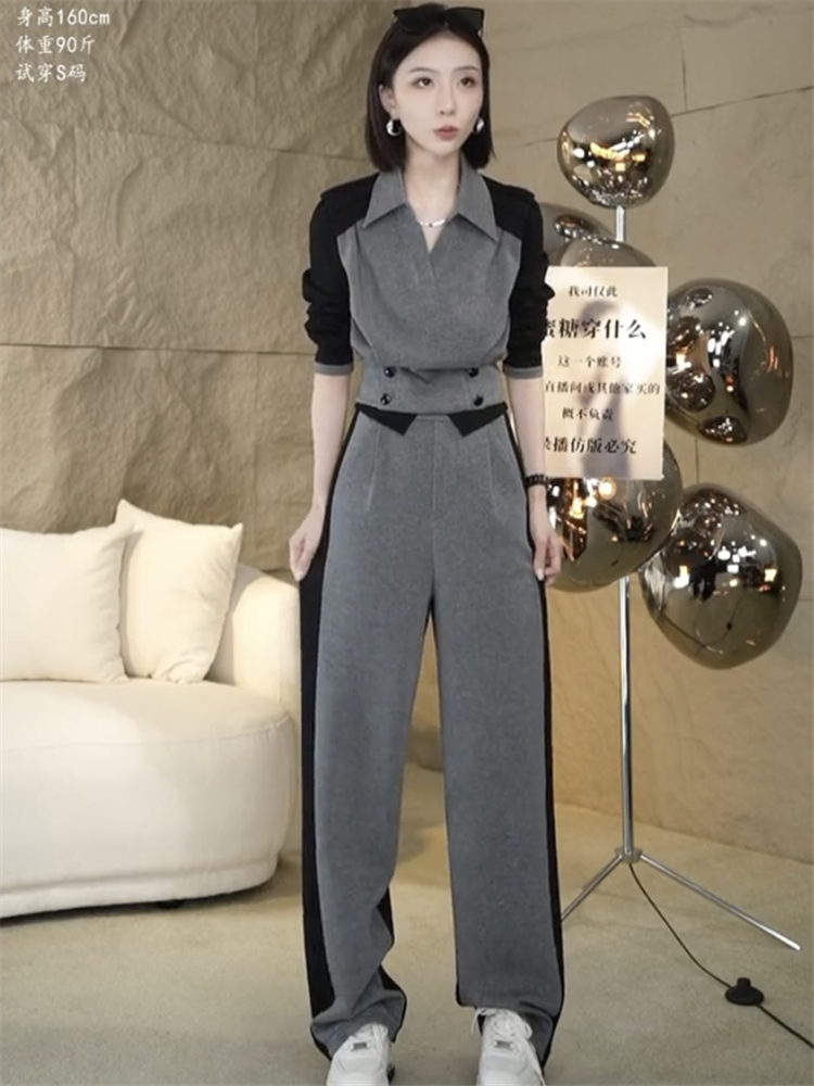 淘宝Oversize欧货,欧货时尚气质高级显瘦休闲运动套装女秋季新款撞色上衣裙子两件套