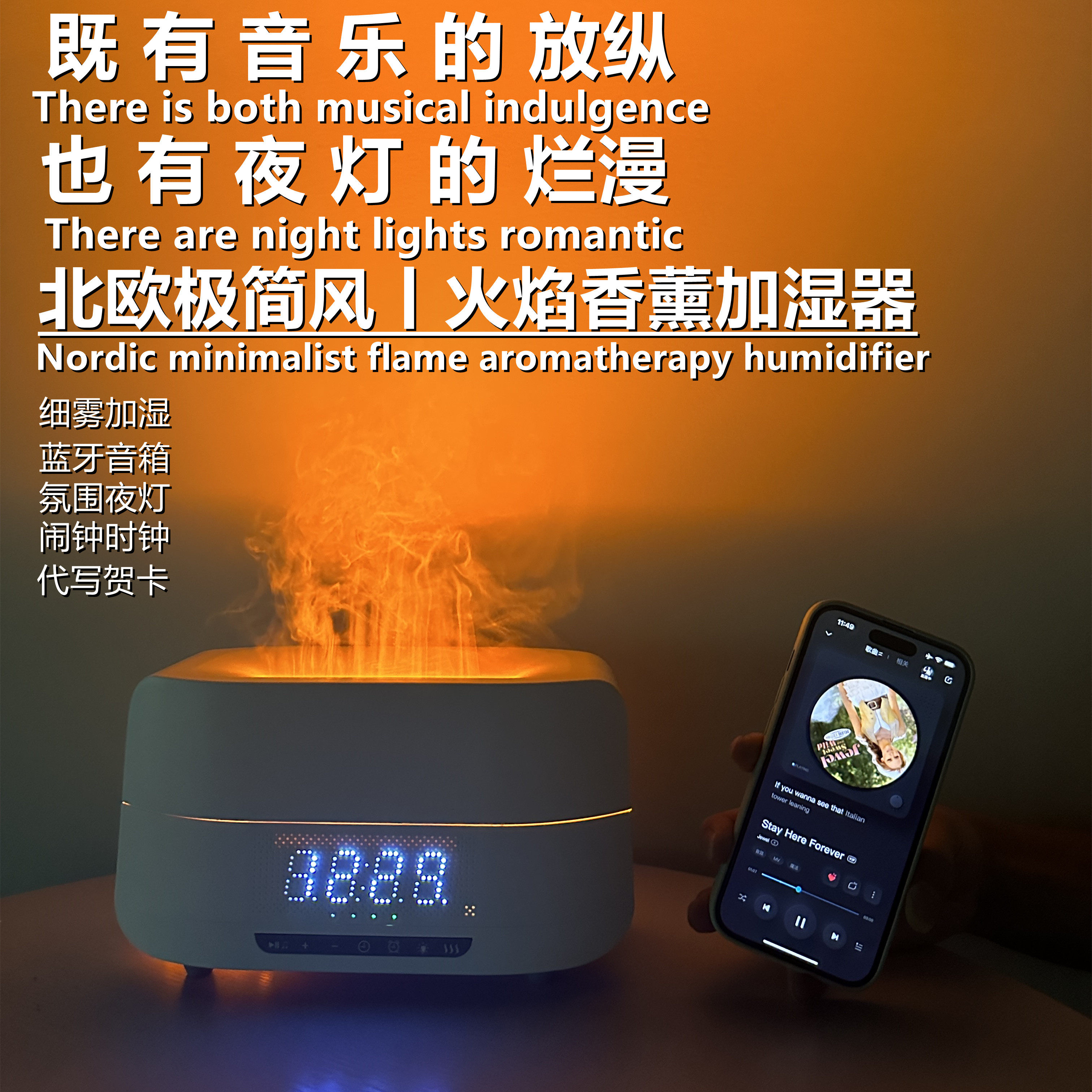 北欧简约仿真火焰香薰加湿器蓝牙音响家用静音卧室氛围灯圣诞礼物