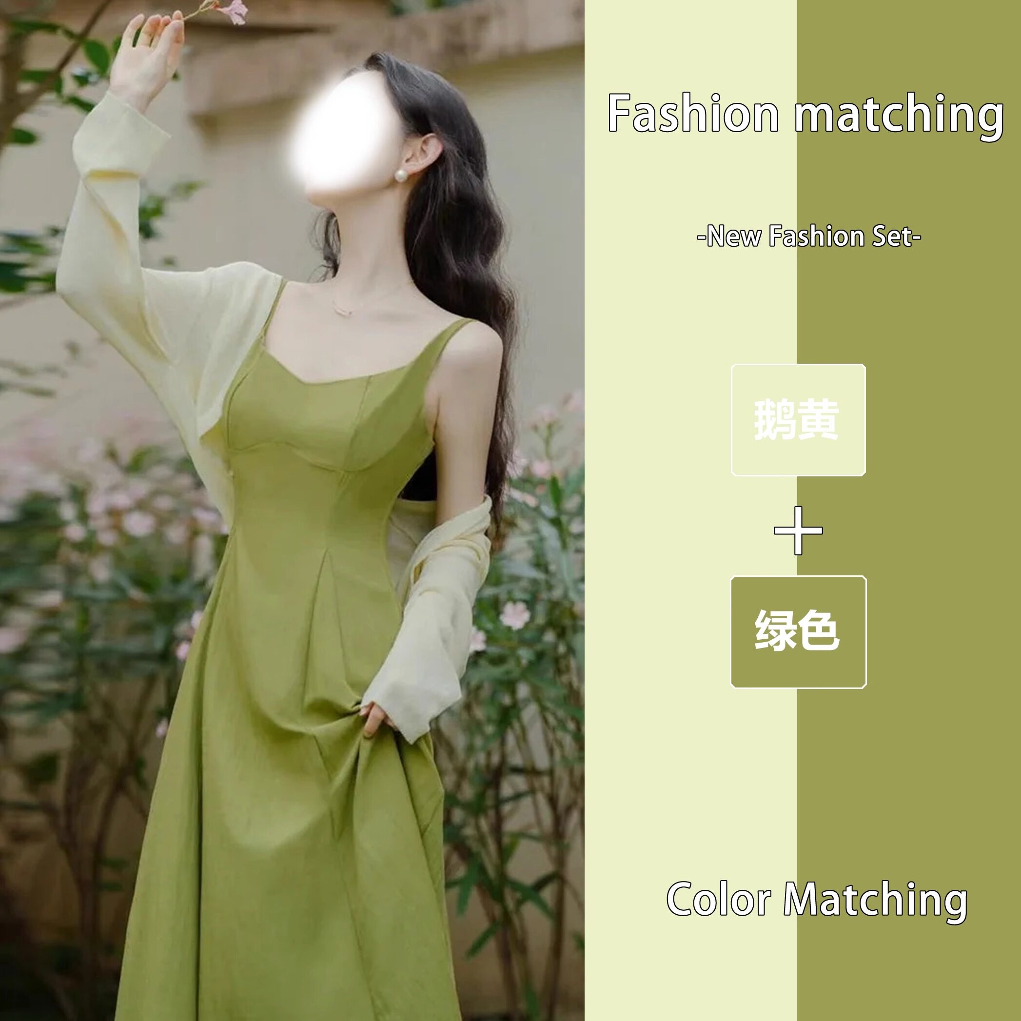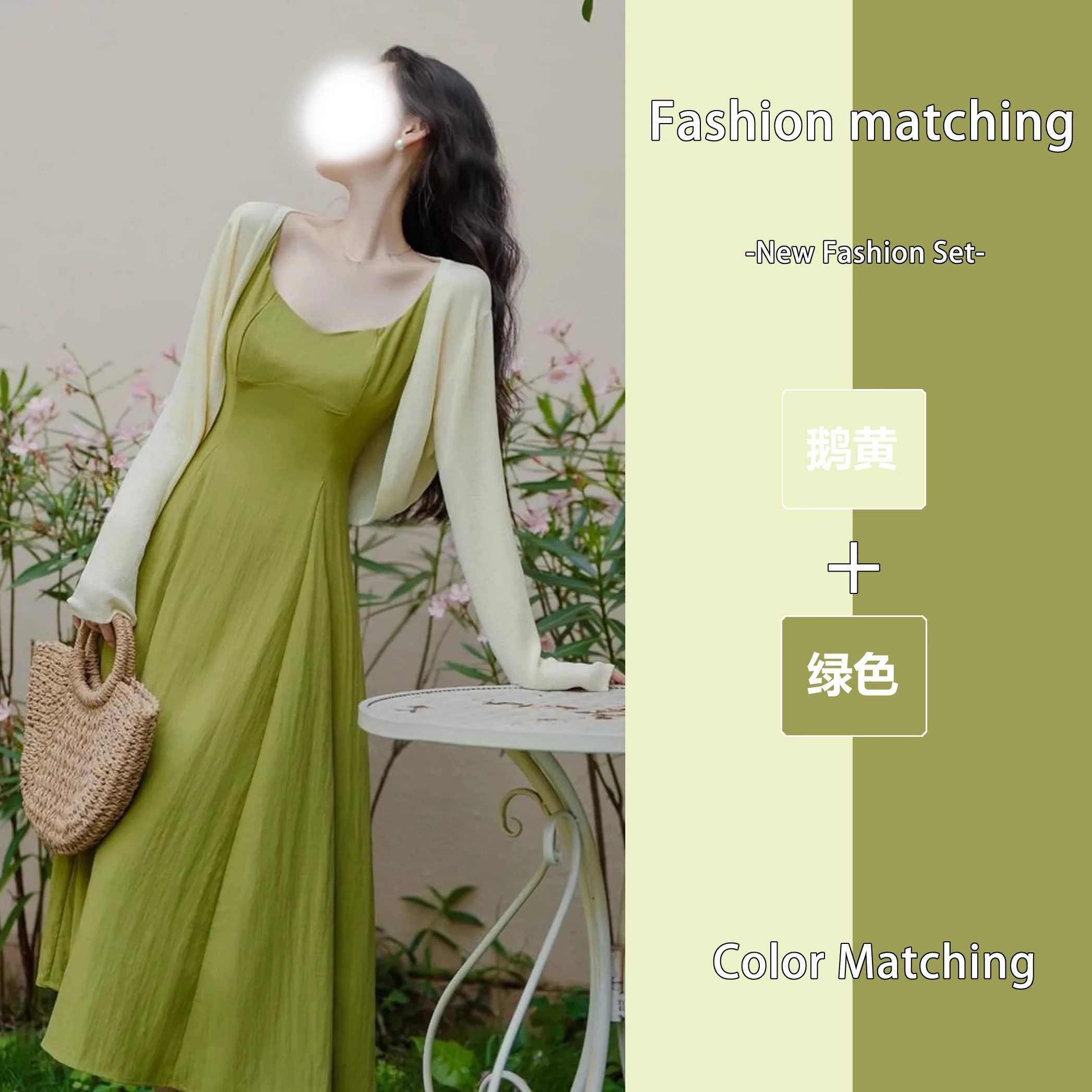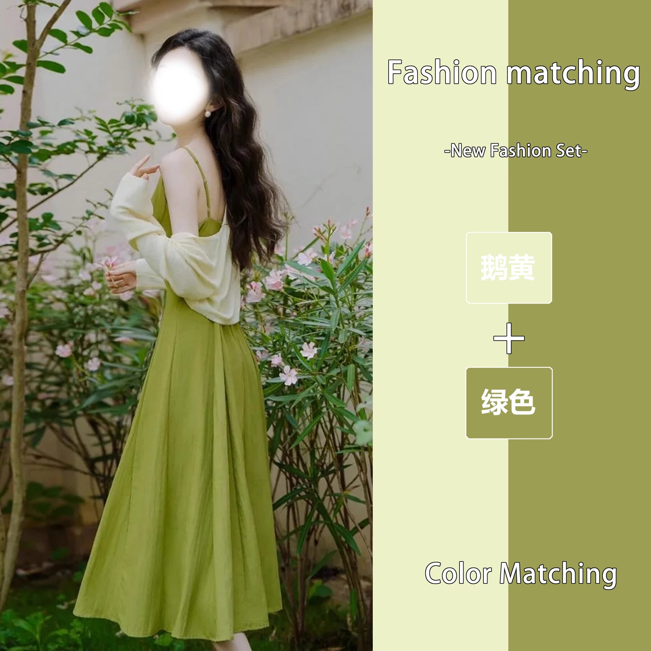 法式女装套装轻奢高级感吊带连衣裙超仙海边度假风沙滩长裙两件套