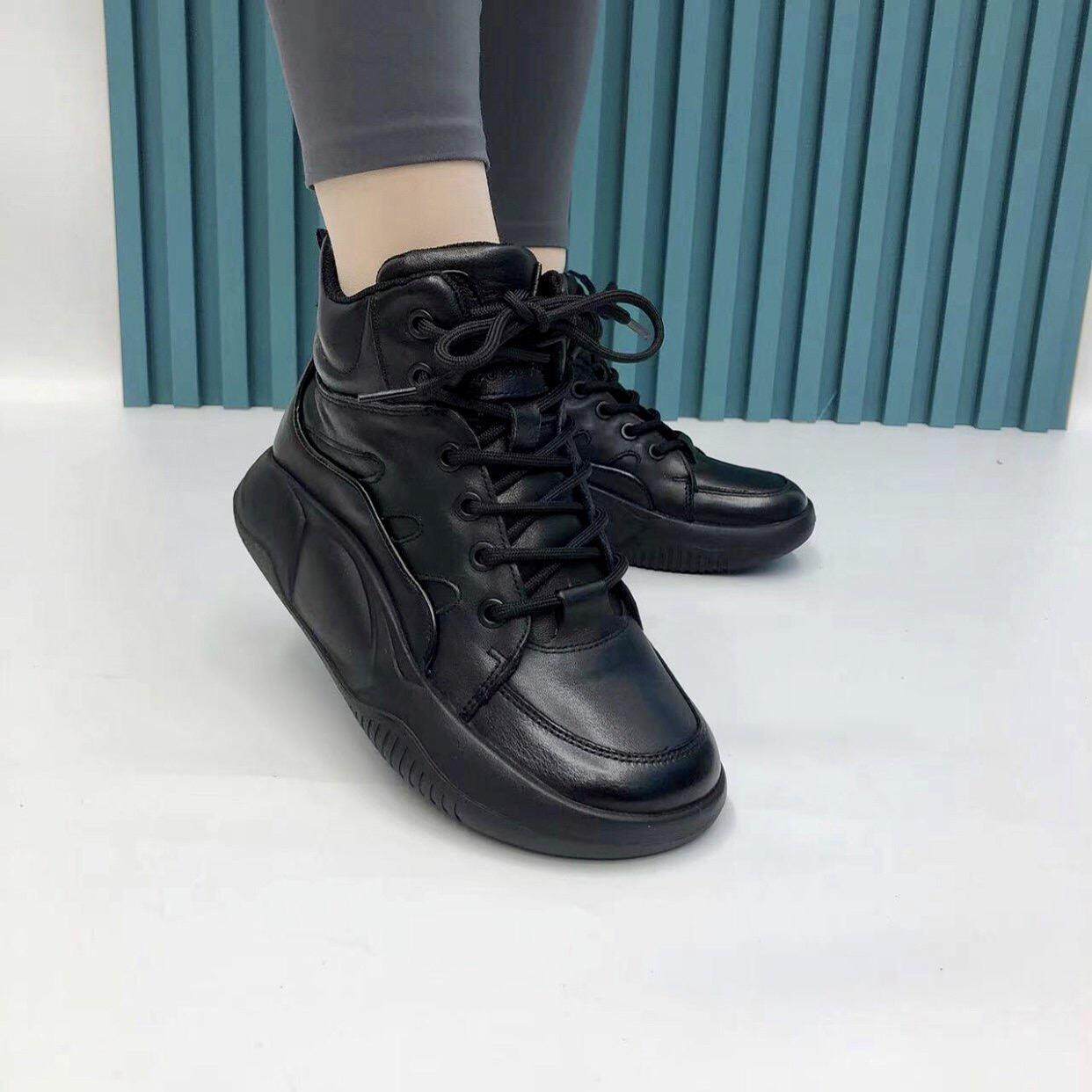 休闲厚底运动鞋真皮加绒高帮女鞋