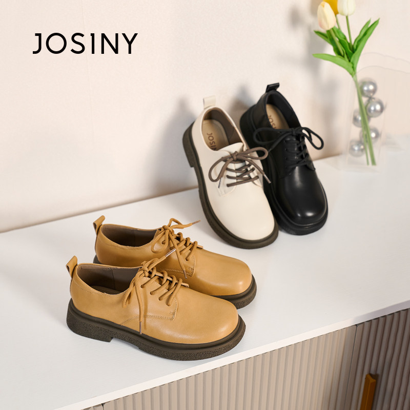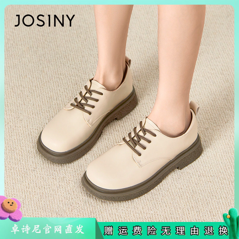 淘宝卓诗尼品牌特卖店,卓诗尼小皮鞋厚底单鞋2023秋季新款纯色系带粗跟圆头时尚女鞋平底