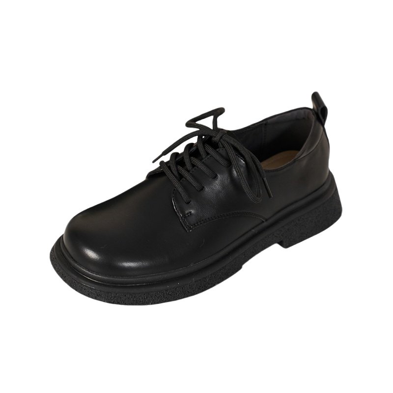 卓诗尼小皮鞋厚底单鞋2023秋季新款纯色系带粗跟圆头时尚女鞋平底