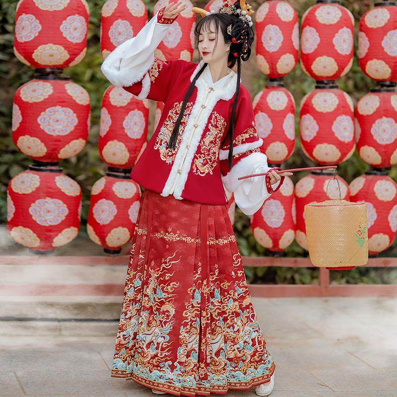 天猫翡缇兰服饰旗舰店,翡缇兰_龙马河图明制汉服女冬季,双色可选 精致刺绣 四件套装 加厚保暖