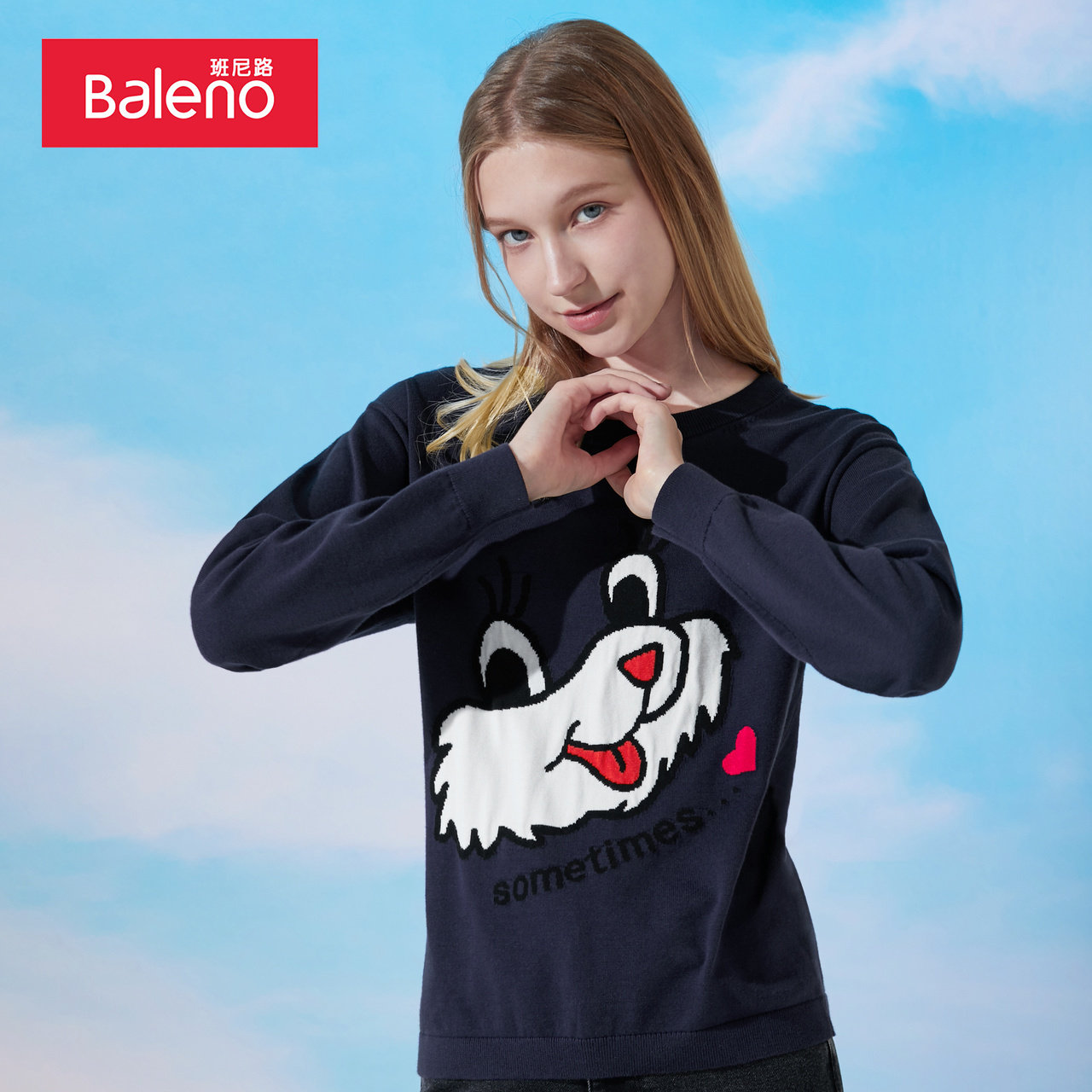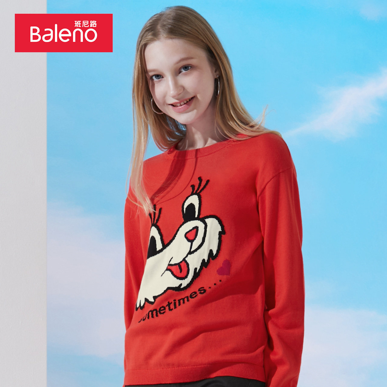 淘宝baleno班尼路官方店,班尼路2023春季针织衫女纯棉甜美动物印花薄款潮流运动休闲毛衫
