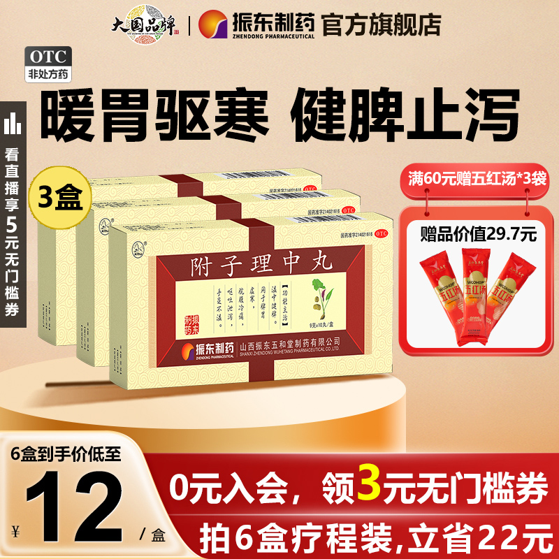天猫振东医药旗舰店,【太行山】附子理中丸9g*10丸/盒脾胃虚寒腹痛祛湿湿气重调理脾胃湿气重,【6盒疗程装】道地药材 暖胃驱寒