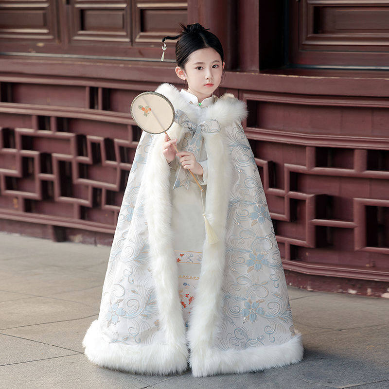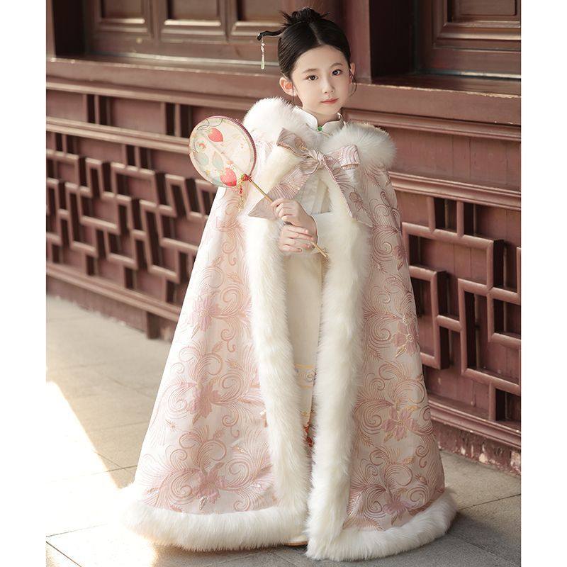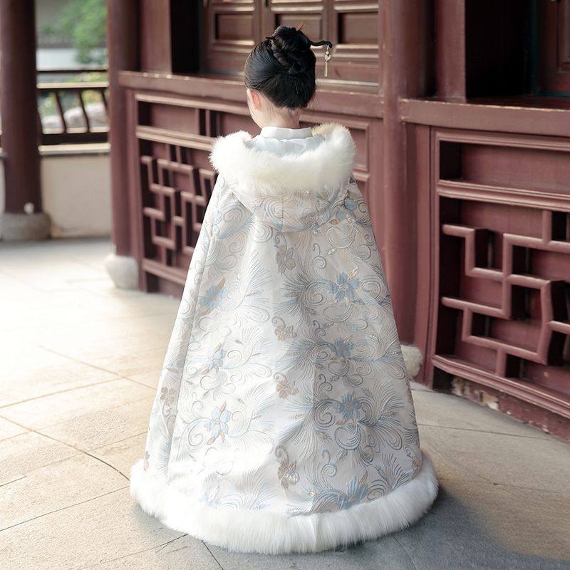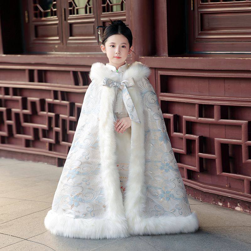 24新款女童披风汉服秋冬斗篷加厚长款小女孩外出披肩连帽保暖外套