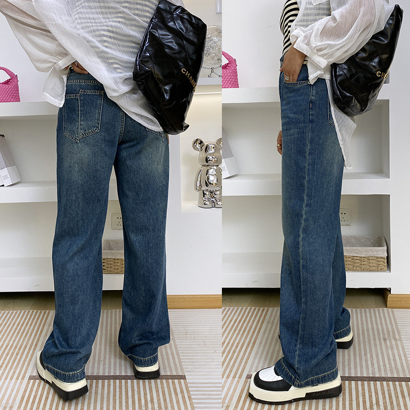 大码女装复古阔腿牛仔裤女秋季新款高腰直筒裤显瘦拖地裤胖mm裤子