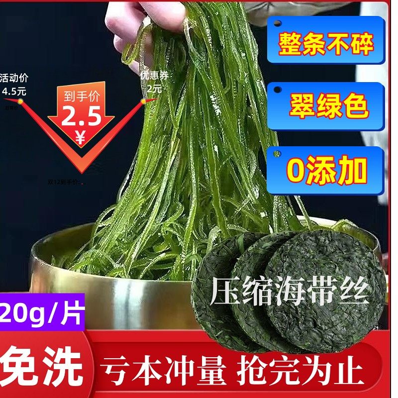 淘宝巴肚巴肚健康食材,海带丝干货压缩海带丝圆饼0添加免洗凉拌菜食材海带干货不碎翠绿