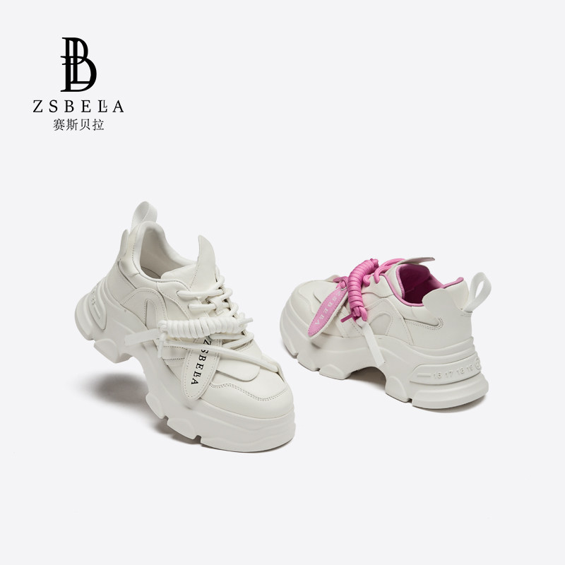 ZSBELLA赛斯贝拉真皮老爹鞋女厚底2023秋季新款增高运动鞋女百搭