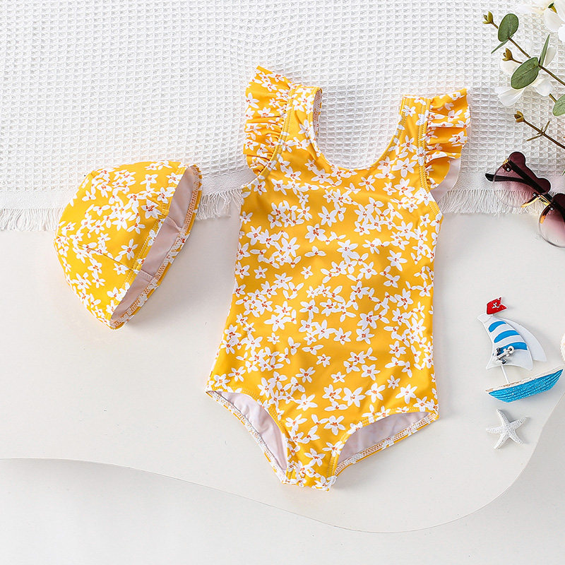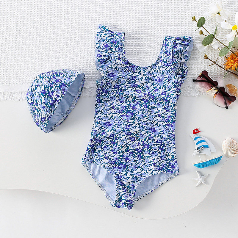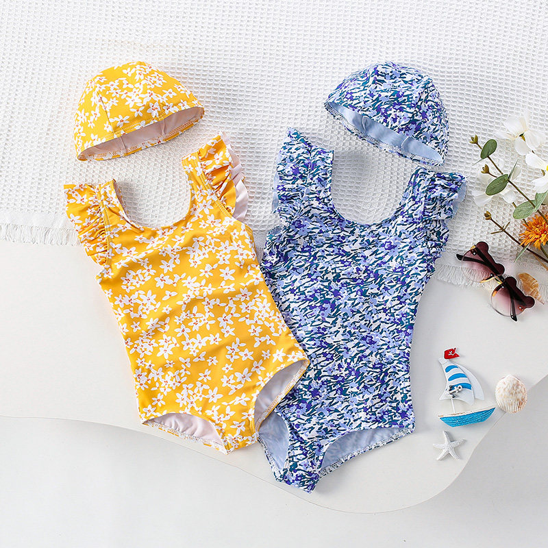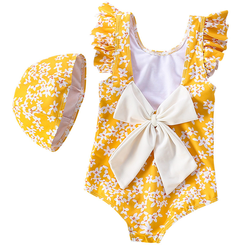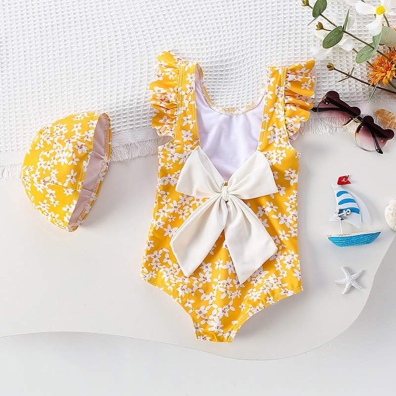 女童泳衣连体碎花露背蝴蝶结泳装夏季温泉度假儿童女孩宝宝游泳衣