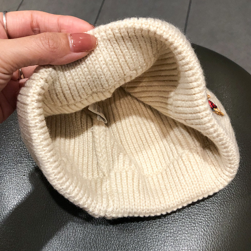 白色针织百搭刺绣毛线帽冷帽帽子
