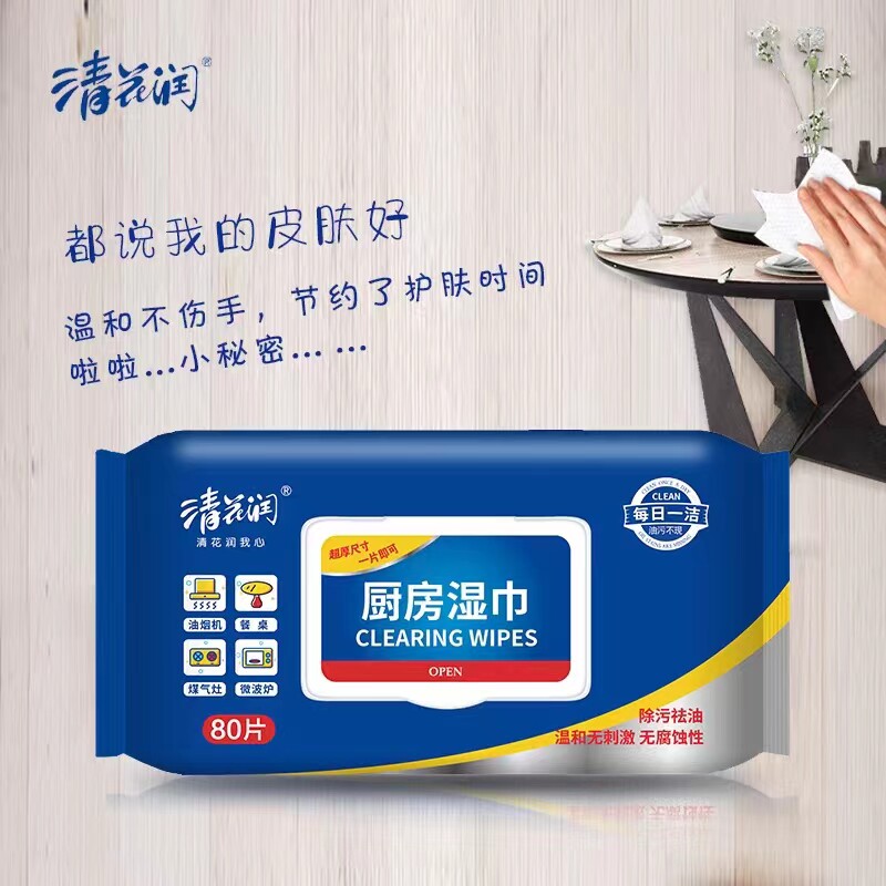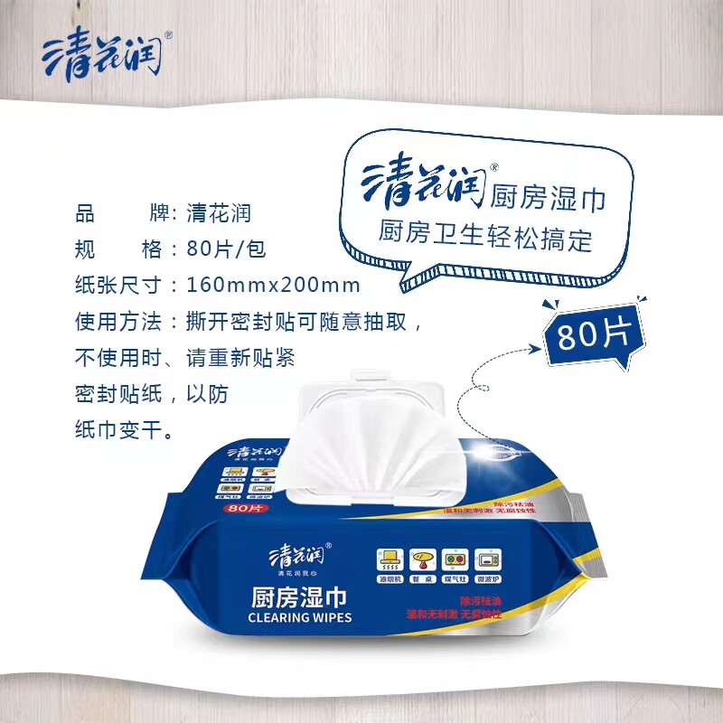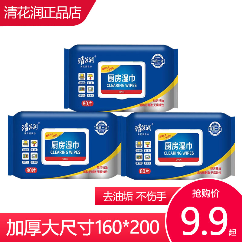 清花润厨房湿巾加厚大尺寸湿纸巾去油去污一次厨房纸家用清洁湿巾