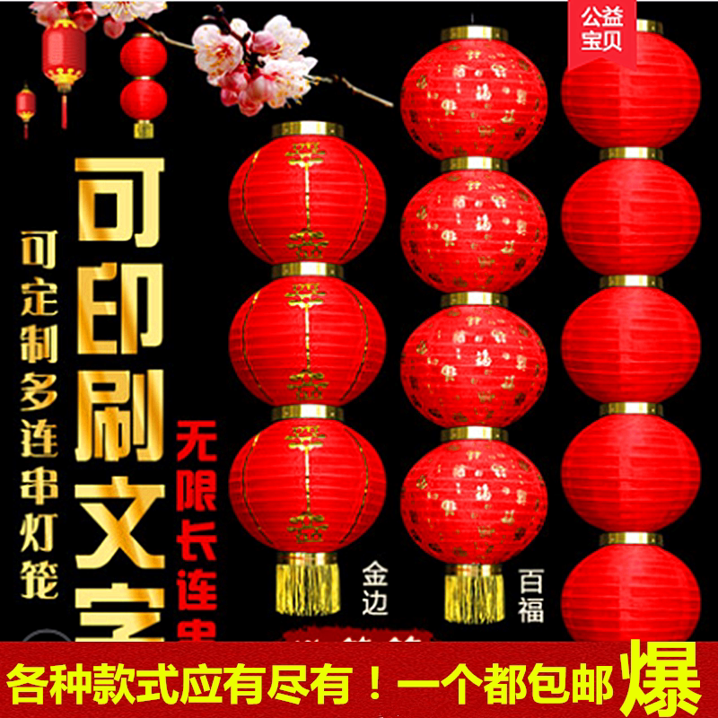 新年大红灯笼折叠舞蹈道具户外防水广告元旦长圆百福连串灯笼装饰