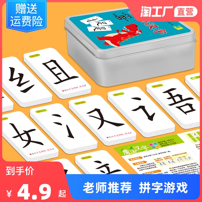 天猫天天特卖工厂店,魔法汉字组合卡片偏旁部首全套认字魔术扑克牌趣味拼字识字卡玩具