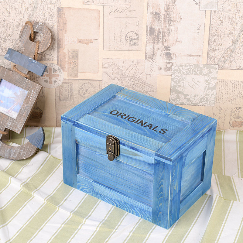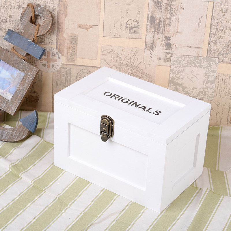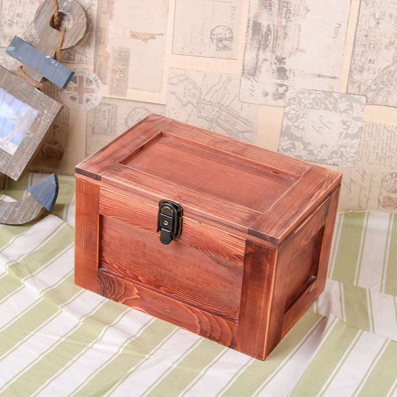 zakka欧式复古创意木质带锁收纳盒实木证件整理化妆盒 首饰盒木盒