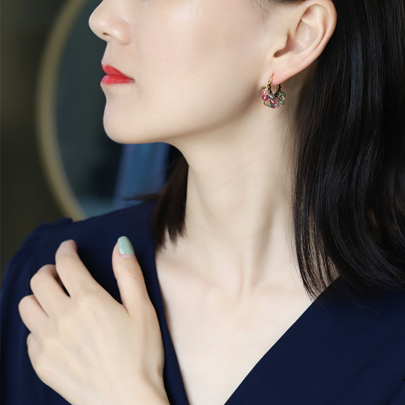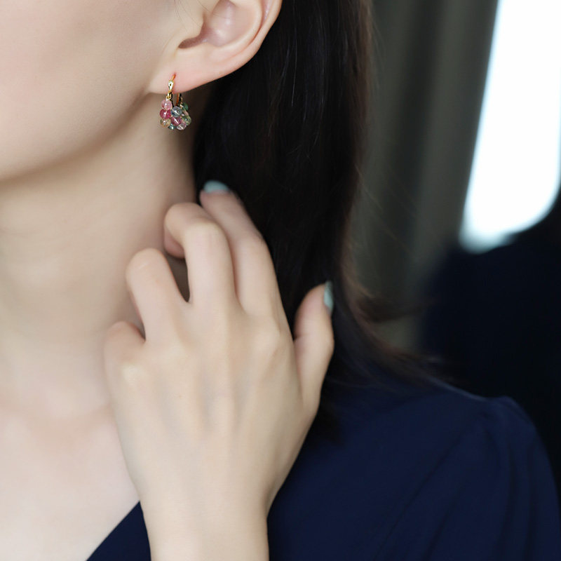 若华雀月=彩色糖果碧玺s925耳环