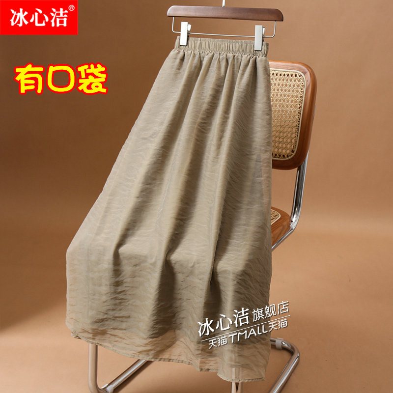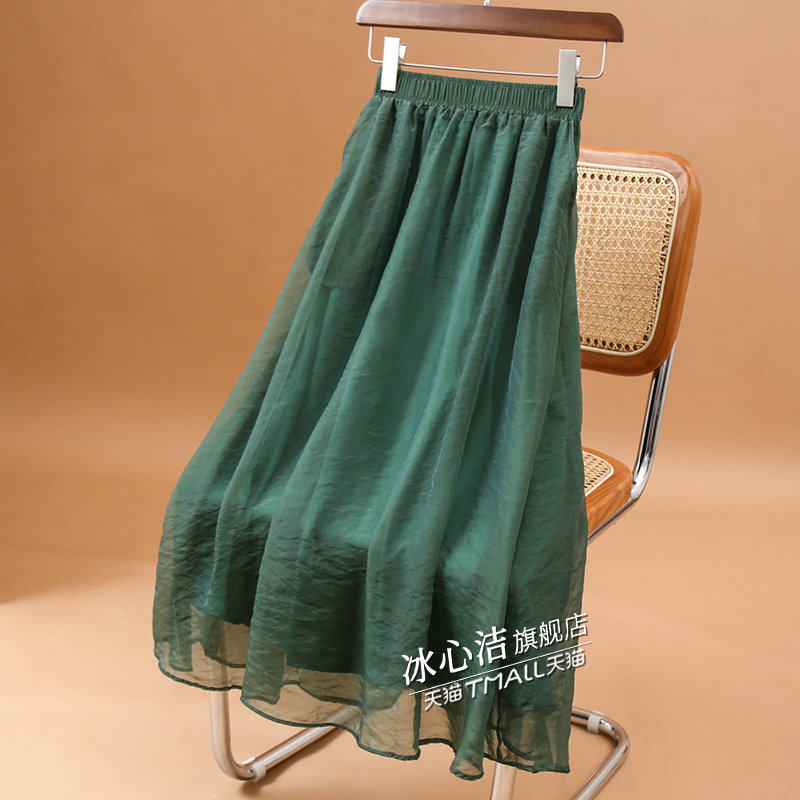 高腰垂感大摆欧根纱半身裙女夏季薄款中长款口袋伞裙蓬蓬裙子长裙