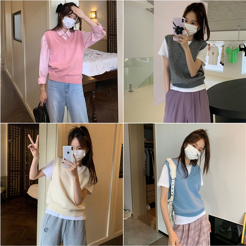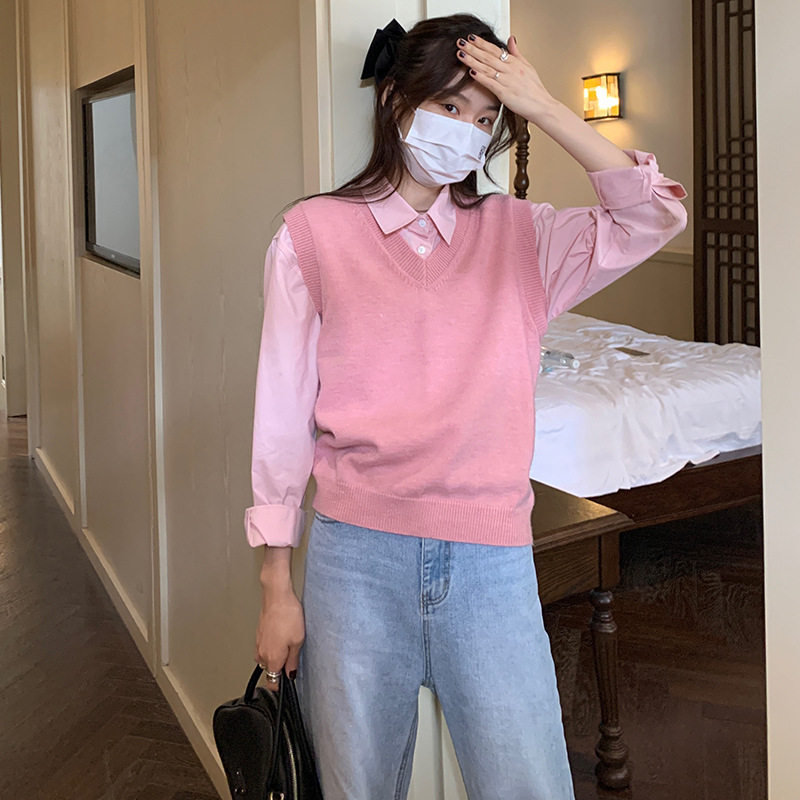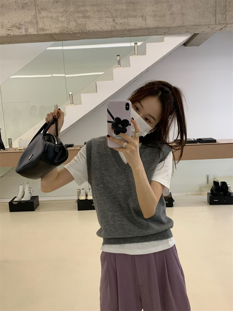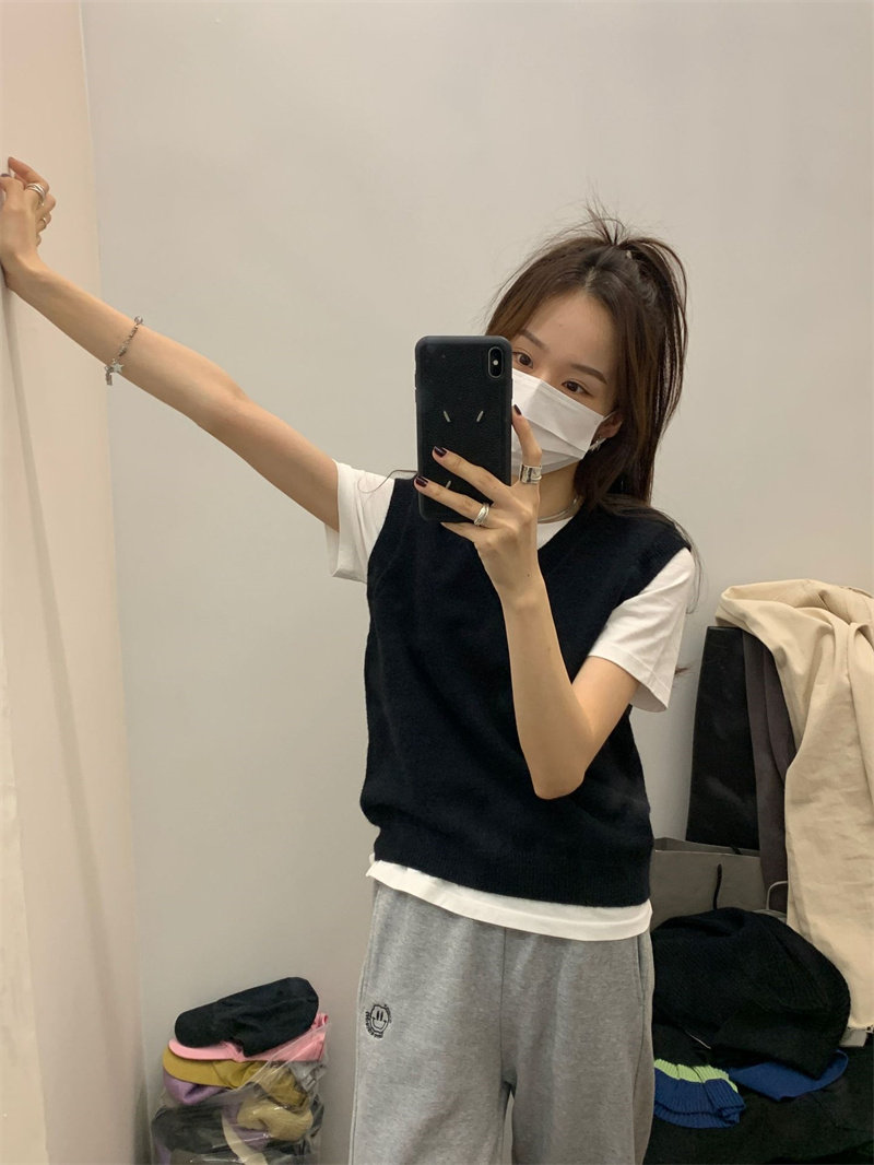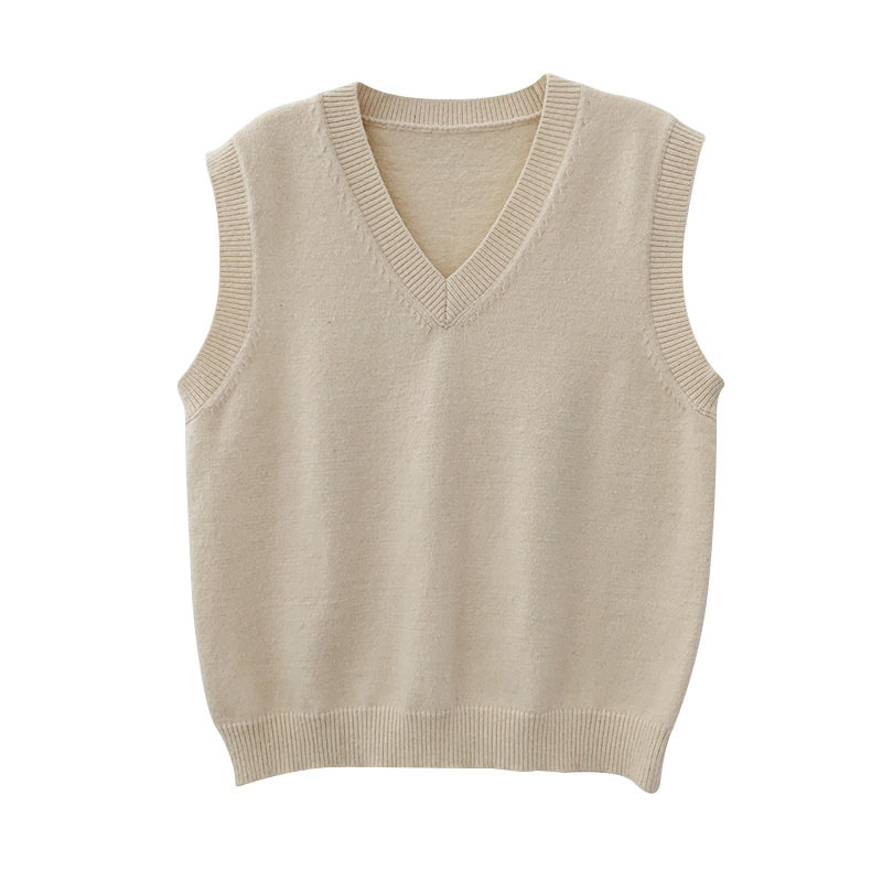 日系复古慵懒风毛衣马甲女春秋V领叠穿针织衫小背心坎肩外搭马夹