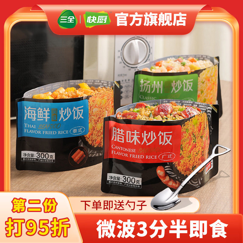 天猫快厨食品旗舰店,三全微波炒饭300g*3袋广式腊味扬州炒饭泰式海鲜快手菜米饭半成品,微波3分半撕袋即食 无需撕袋