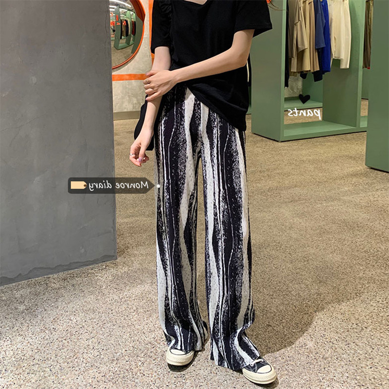 梨形身材大码冰丝百褶阔腿裤女夏季高腰垂感胖妹妹mm显瘦雪纺裤子